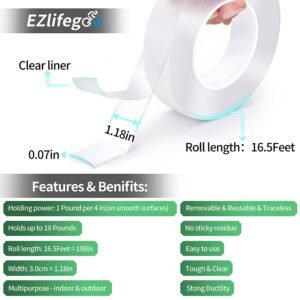 Double Sided Tape Heavy Duty(16.5FT/5M),Multipurpose Wall Tape quantity